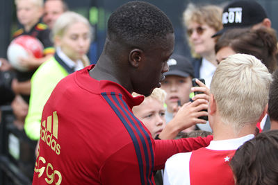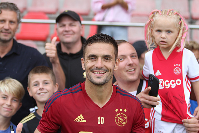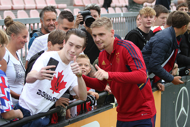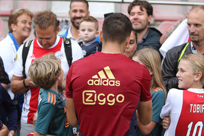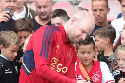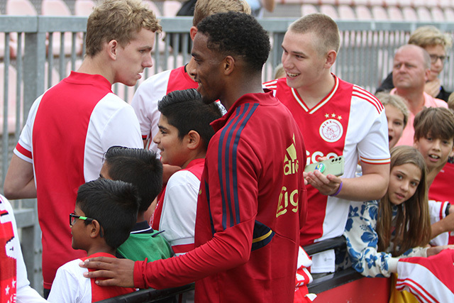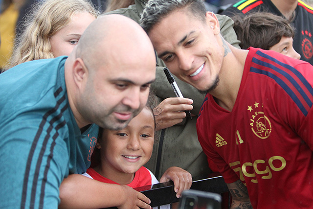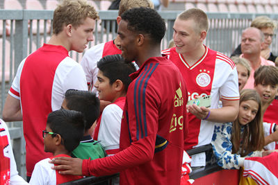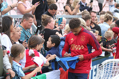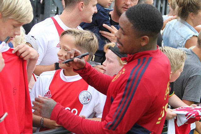 Ajaxsupporters in alle maten vergaapten zich aan Calvin Bassey, Dusan Tadic, Kenneth Taylor en al die anderen. Vooral Antony is populair bij de jeugd. Perr Schuurs ontbrak. Hij is bezig met de afronding van zijn transfer naar Torino.