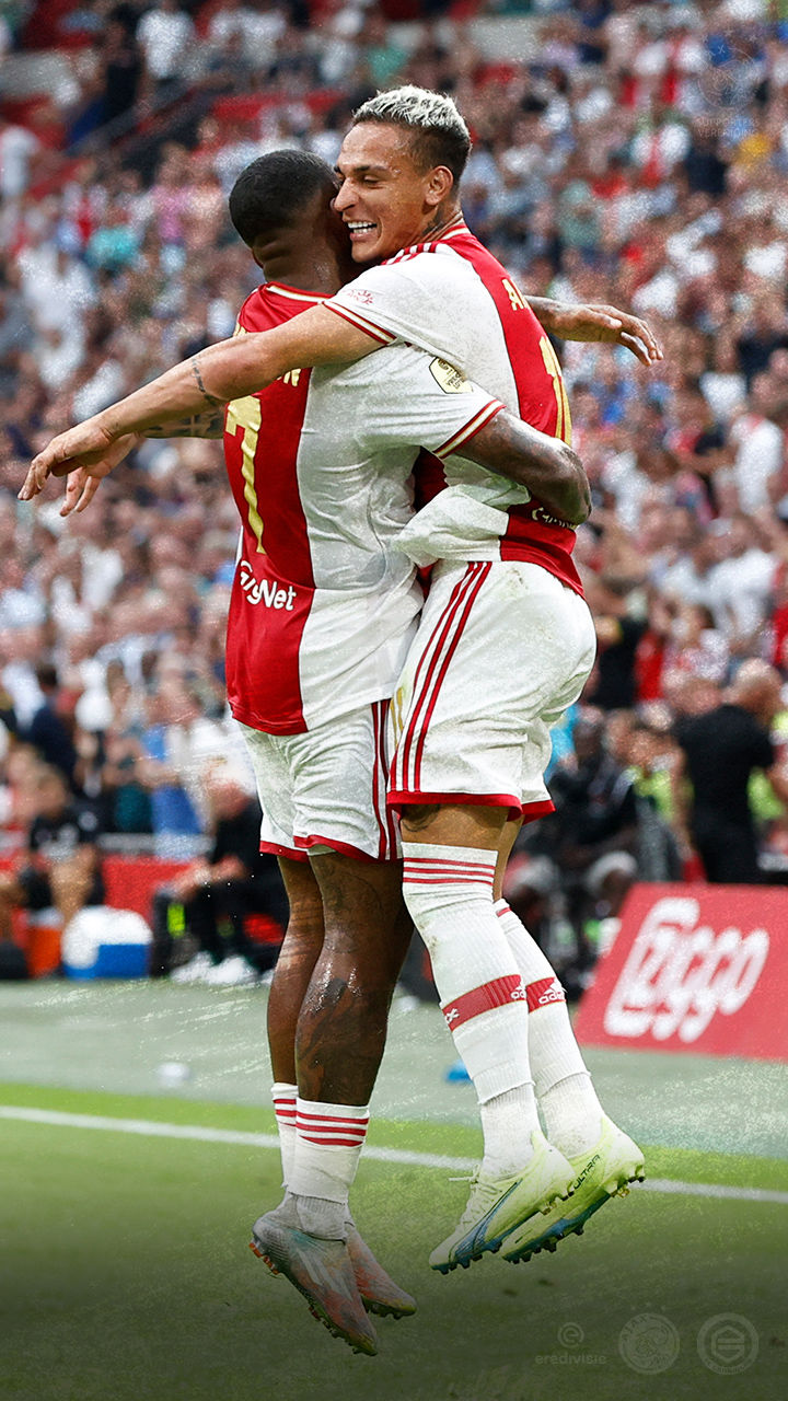 Weet je nog hoe David Neres en Antony elkaar vonden na doelpunten? Steevast tegen elkaar aanspringen om het feestje te vieren. De Braziliaan lijkt in Steven Bergwijn een nieuw juichmaatje te hebben gevonden. Dat levert een fraaie wallpaper op!