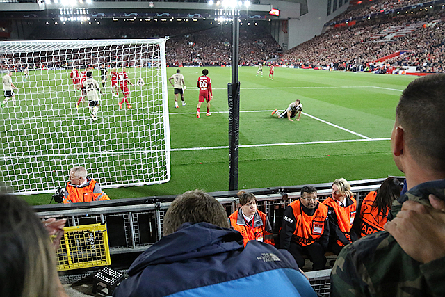 Het betreden van Anfield ging ook supersoepel. We kunnen niet veel Europese awaydays opnoemen waar het er allemaal zo ontspannen en vriendelijk aan toegaat.