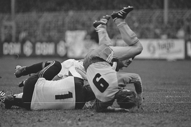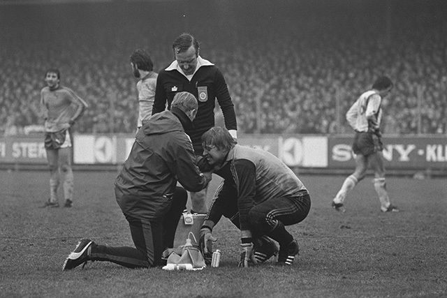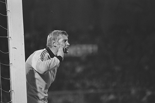 Schrijvers is niet meer, maar talrijk zijn de foto’s waarop hij zich heldhaftig voor de bal werpt. Aanvallers van de tegenpartij schrokken soms alleen al van zijn verschijning. Onbevreesd en vol zelfvertrouwen.
