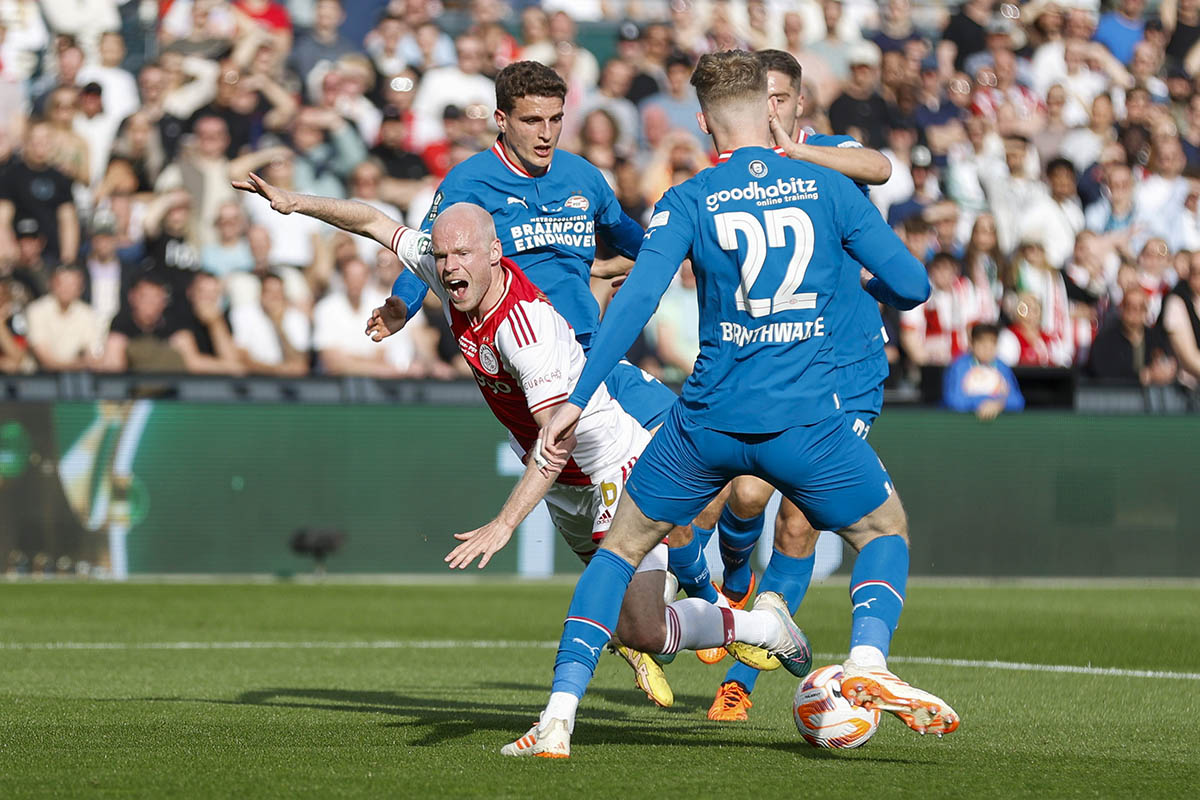 De middenvelder stond op en rolde zijn broekspijp omhoog om te tonen dat hij wel degelijk goed was geraakt. Ook wilde Klaassen niet horen dat puur strijd leveren niet bij Ajax zou passen. “Ajax moet altijd een vechtmachine zijn. In de jaren dat we heel goed waren, was het leveren van strijd ook een van onze sterke punten.”