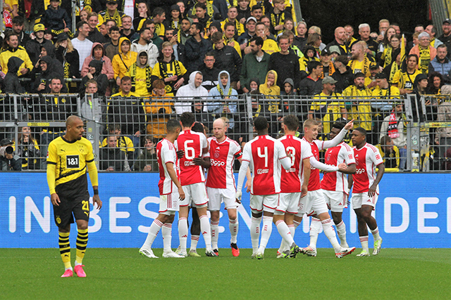 In het nagenoeg uitverkochte Signal Iduna Park lieten de Ajacieden zich van hun beste kant zien. Vocaal deed het uitvak niet onder voor de ruim tachtigduizend aanwezige toeschouwers. Wie niet beter zou weten, zou niet zeggen dat het hier een oefenpotje betrof. Het ouderwets zingen, springen en juichen doet ons hunkeren naar de start van de eredivisie.