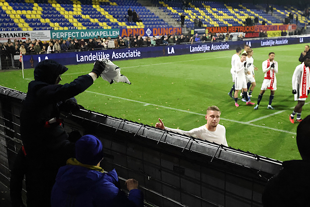 Uren onderweg in de bus of auto voor zes minuten en een beetje blessuretijd in Waalwijk. Maar dan heb je ook wel wat: drie punten, een ludiek wedstrijdsjaaltje, een bedankbrief van Ajax en een toffe herinnering. En we hebben ook de foto’s nog!