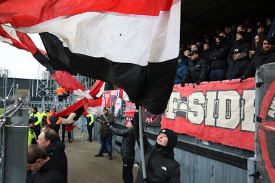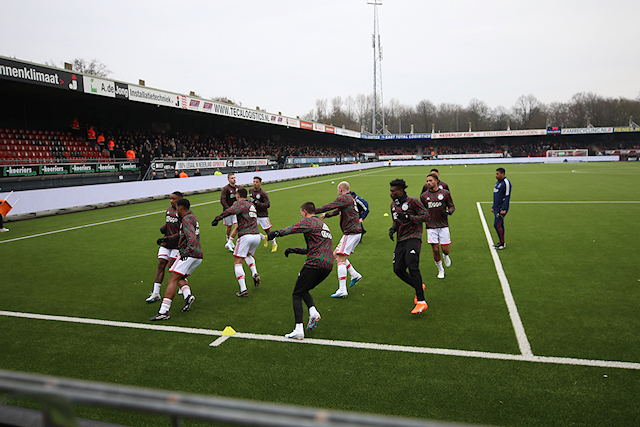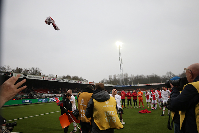 Dat lukte met de driepunter en dus was de opluchting na afloop merkbaar. Er gingen flink wat shirtjes over de hekken heen naar de meegereisde supporters. Een bedankje voor de steun. Onze fotograaf De Brouwer bracht alles weer fraai in beeld. De tofste kiekjes hebben we hieronder verzameld in ons fotoverslag.