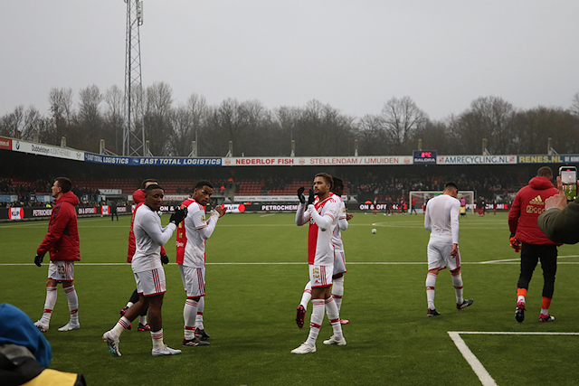 Hèhè, we weten weer wat winnen is. Dat voelt best lekker en wat was het lang geleden. Met John Heitinga als interim-trainer was Ajax met 1-4 te sterk voor Excelsior. Hieronder tref je de foto’s van onze trip naar het stadion met die veel te lange naam.