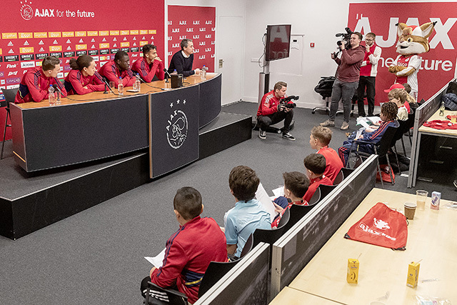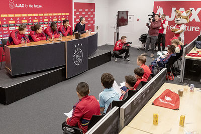 De Ajacieden bekenden na afloop dat ze de Ajax Kids Club persconferentie stiekem het leukste mediamoment van het jaar vinden. De vragen van de volwassen journalisten kennen ze inmiddels wel.