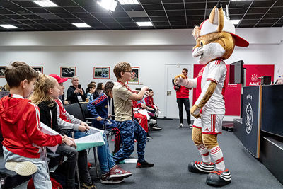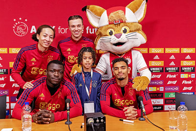 De allerleukste persconferentie van het jaar stond zondag weer op het programma. Gewapend met een schrijfblok en pen verzamelden tien leden van de Ajax Kids Club zich bij de Johan Cruijff Arena, om hun helden het hemd van het lijf te vragen. Check snel de beelden!