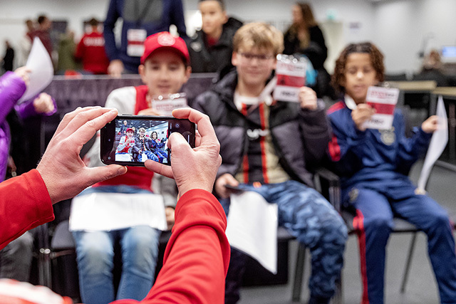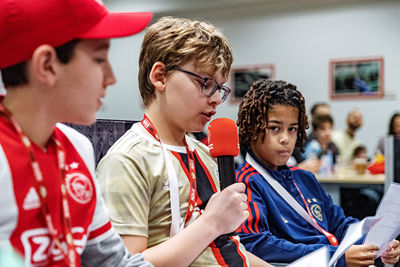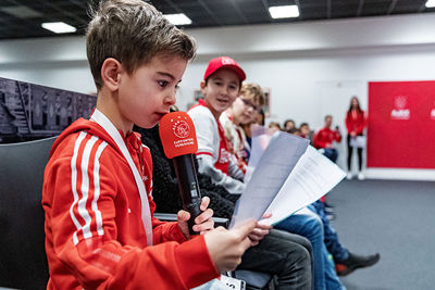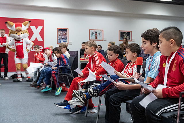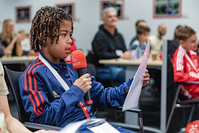 We kunnen ons voorstellen dat zo’n Ajax Kids Club persconferentie best spannend is. Daar viel bij de gelukkige winnaars echter weinig van te merken. De jeugdige Ajacieden waren vooral reuze enthousiast en konden niet wachten om in de huid van een echte journalist te kruipen.