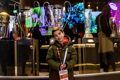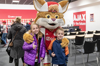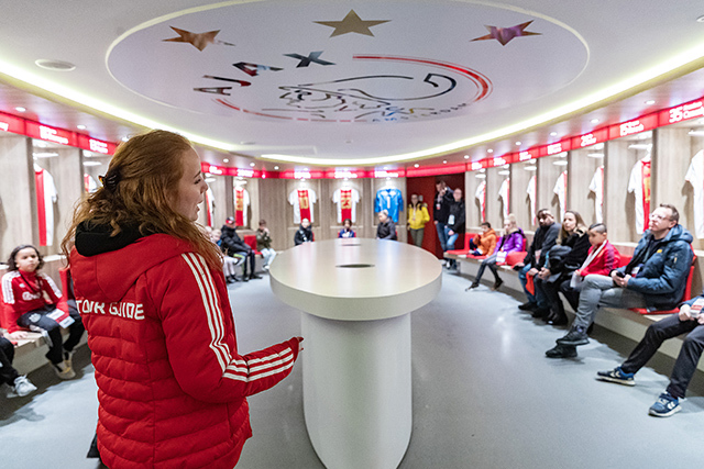 Eerst was het tijd voor een kennismaking met de Johan Cruijff Arena. Op de tribunes kom je als supporter wel vaker, maar een bezoekje aan het veld, de prijzenkast en de kleedkamer voelt wel heel bijzonder.