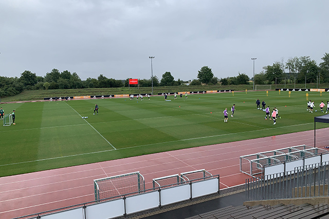 De training was niet heel intensief. Een partijvorm, wat afwerken en een passoefening. Dat was niet zo gek, want om 17.00 uur stond het ingelaste oefenduel met SpVgg Unterhaching (5-3) op de rol. Het wolkendek bleef dreigend boven Sportplatz Adi Dassler hangen, maar er kwam gelukkig geen water meer uit.
