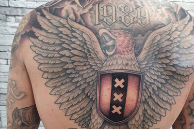 Daarom deden we een oproep. We hadden wel verwacht dat daar de nodige reacties op zouden komen, maar onze verwachtingen werden ruim overtroffen. Jemig, wat zijn er veel Ajacieden die onze club op bijzondere wijze op hun lichaam hebben vereeuwigd. Van het klassieke logo tot de drie kleine vogeltjes. Van Johan Cruijff en Appie Nouri tot de Amsterdamse grachten. Echt alles komt voorbij.