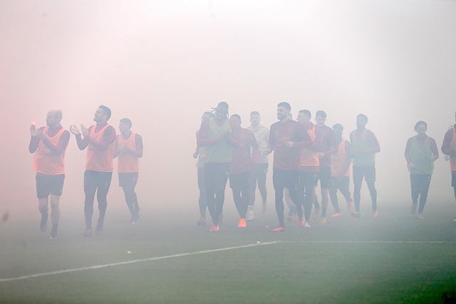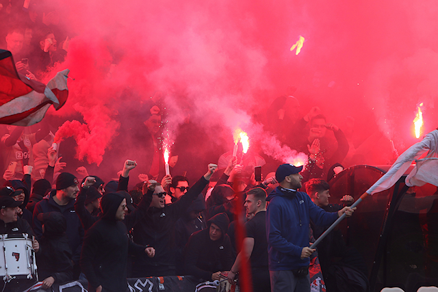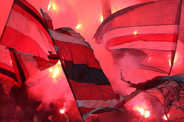 Tijdens de vijftig minuten durende training werd maar weer even aangetoond hoe belangrijk de klassieker en alles er omheen wel niet is. Door vurig te zingen en te springen en met het nodige bengaals vuur te zwaaien. Een groot spandoek voor Ajax' 123ste verjaardag mocht natuurlijk niet ontbreken.