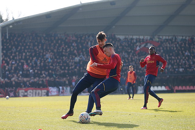 Dat voelde je ook aan alles tijdens de laatste training. De aanwezige supporters stonden volle bak achter hun ploeg. De wisselwerking tussen de Ajacieden op de verschillende tribunes was goed hoorbaar.