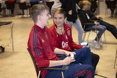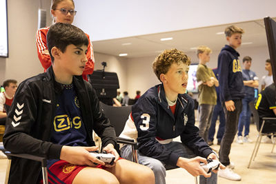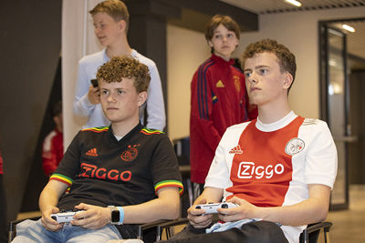 Ruim tachtig leden van Ajax Jonge Schare bewezen tot wat voor hoogstandjes ze in staat zijn op het digitale voetbalveld. Gewapend met een PlayStation 5-controller gingen ze de strijd met elkaar aan. We zagen frivole acties, bikkelharde slidings en vooral veel doelpunten.