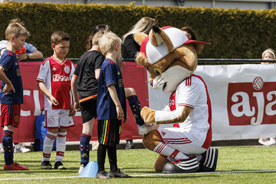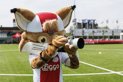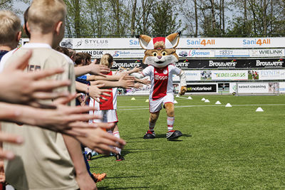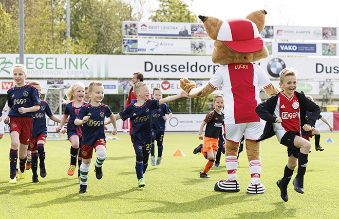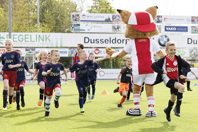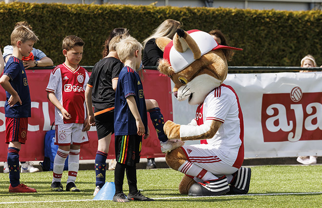 Dat deden zij onder leiding van professionele trainers. En natuurlijk in aanwezigheid van Lucky. Onze mascotte trapte zelf een balletje mee, deelde high-fives uit en ging op talloze foto’s. De pluizige lynx draait overuren, maar met veel plezier. Het hoort immers allemaal bij de Ajax Kids Tours, powered by ABN-Amro.
