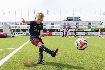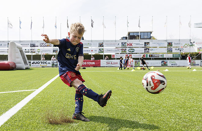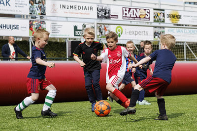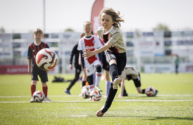 Ook in Overijssel werd het namelijk weer een heerlijk sportief feestje, met alle bekende ingrediënten: toffe voetbalspelletjes, een bonte verzameling Ajaxshirtjes en vooral veel lachende gezichten. Een paar honderd Ajaciedjes leefden zich immers uit op het sportpark van SC Genemuiden.