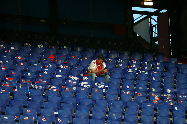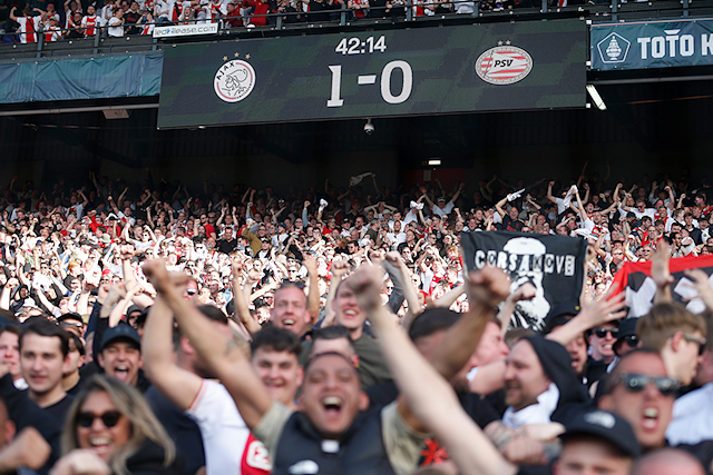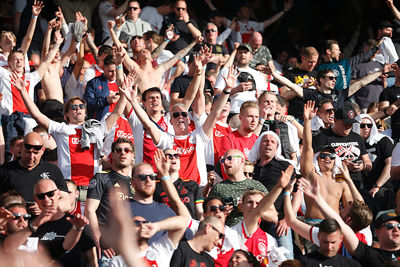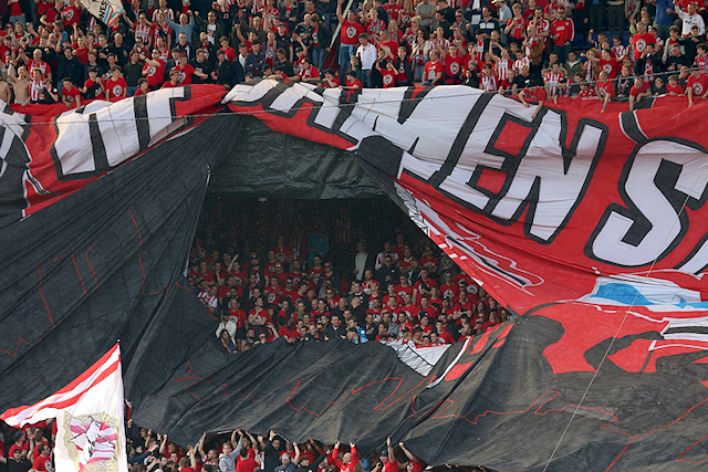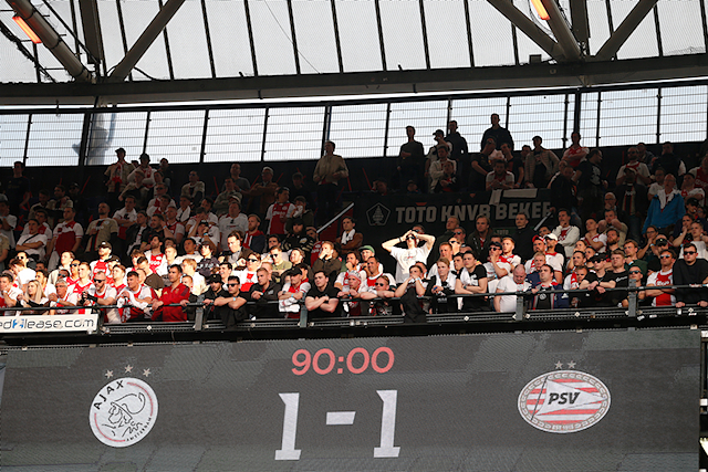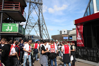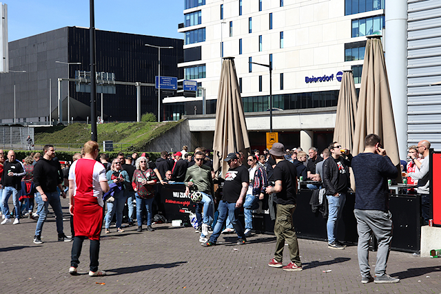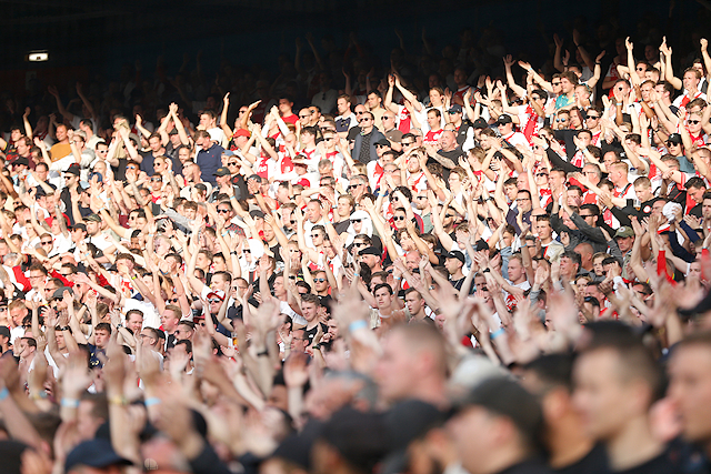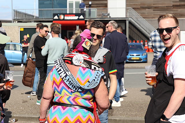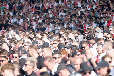 Ondanks het chagrijn van de laatste maanden, was de sfeer prima in een werkelijk zonovergoten stadion. Biertje erbij, t-shirtje zwaaien, zonnetje op de bol, knalharde muziek en lekker zingen en springen. Met je vrienden aan je zij. Vol achter de club! Tot de fatale penaltyreeks, die exemplarisch was voor het huidige rotseizoen.