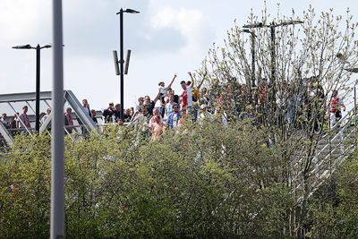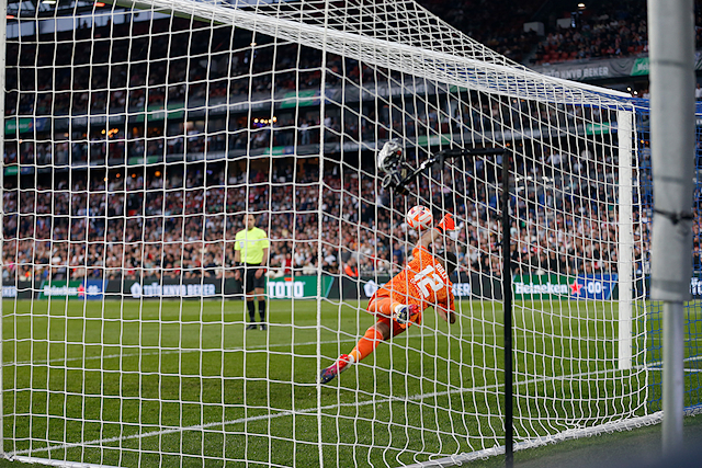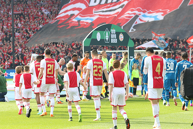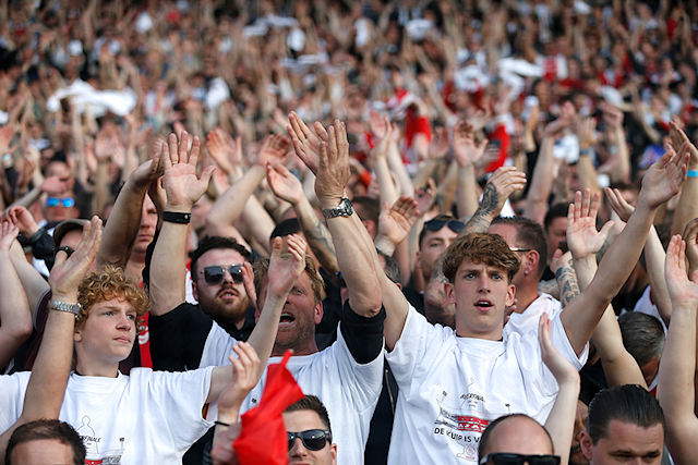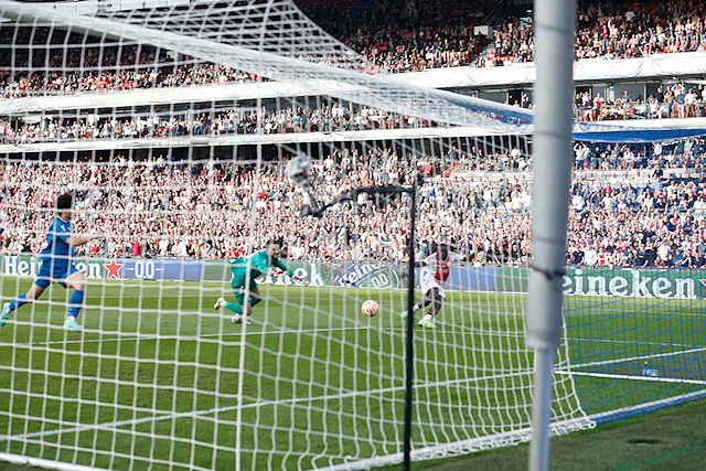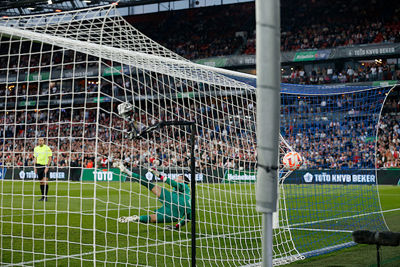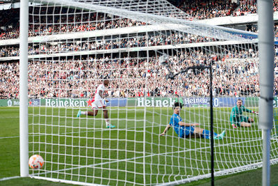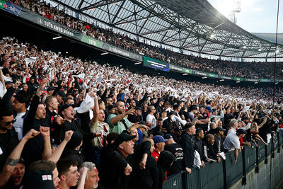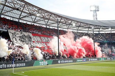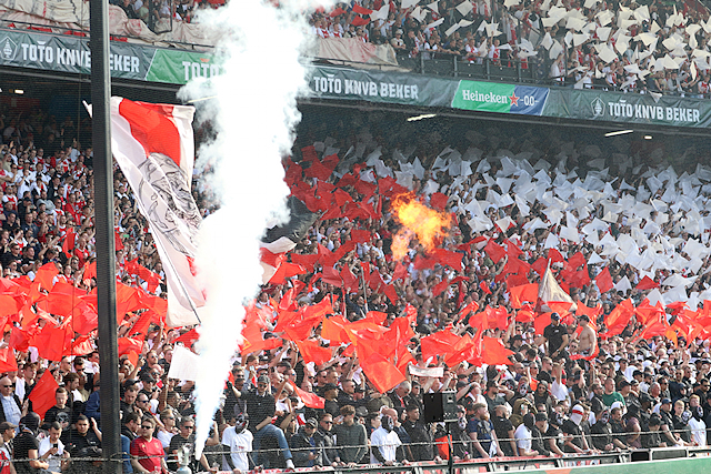 Met z’n allen naar De Kuip in 135 bussen en zes treinen. De dag van een KNVB-bekerfinale is altijd speciaal, al liep het niet goed af. De dennenappel ging tijdens een potje theatervoetbal aan onze neus voorbij. Wat overblijft, is ons fotoverslag.