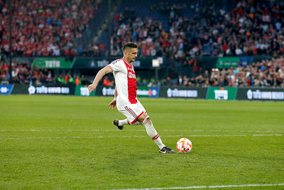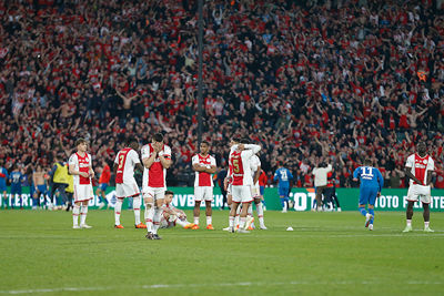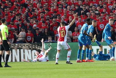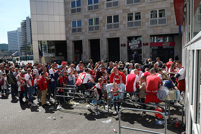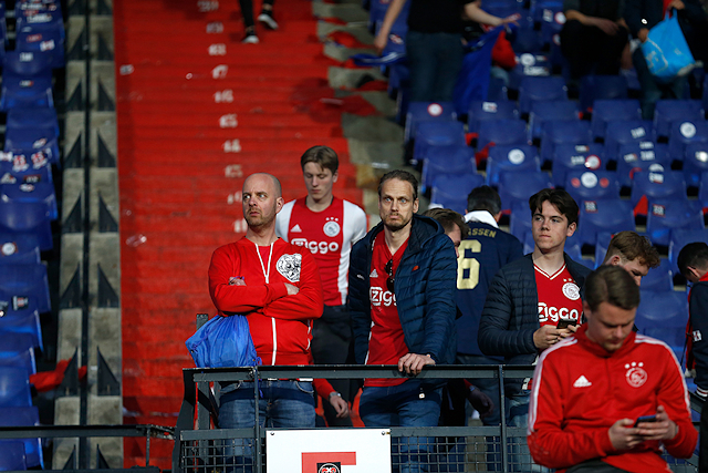 Na de verloren penaltyreeks wilden Ajaxsupporters De Kuip zo snel mogelijk verlaten. Met gierende banden naar huis. Onze fotograaf De Brouwer legde de finaledag van begin tot eind vast. Van hoop naar teleurstelling in beeld.