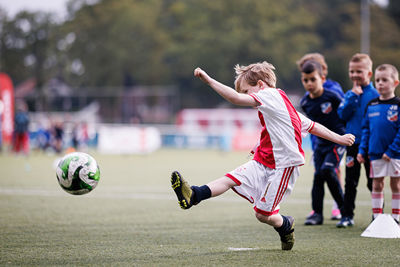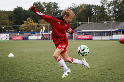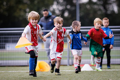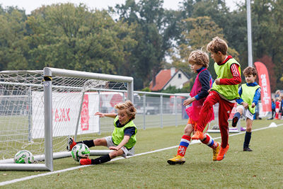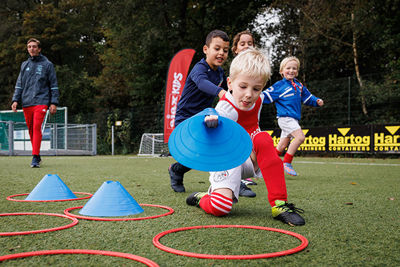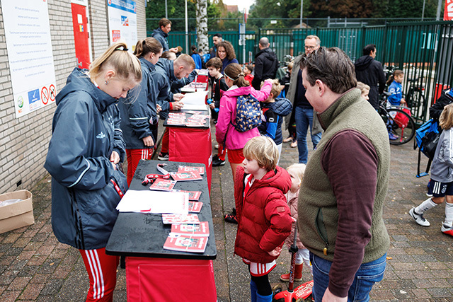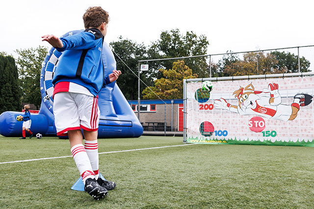 In ’t Gooi deden vele Ajaciedjes onder begeleiding van professionele trainers een heleboel voetbalspelletjes. Onze leden van de Ajax Kids Club waren natuurlijk ook weer van de partij. Dan weet je dat je kunt rekenen op mooi gepoetste voetbalschoentjes en een bontje verzameling Ajaxshirtjes. Leuk!