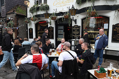 De Europese awayday aan de Engelse zuidkust was bijzonder geliefd. Het uitvak zat ramvol en er reisden ook veel supporters zonder kaartje af naar Brighton. Sportieve malaise of niet, Ajacieden volgen overal. De pubs in het centrum stroomden vol, net als de terrassen langs het strand. Daar was het prima toeven, want het zonnetje liet zich regelmatig zien.