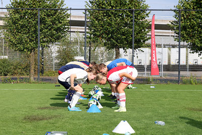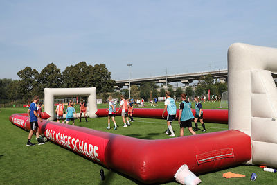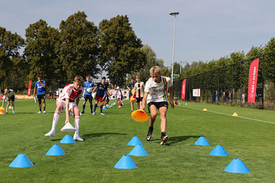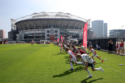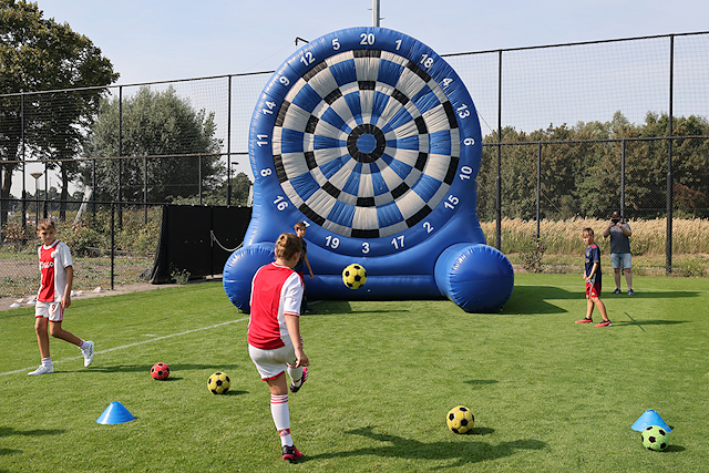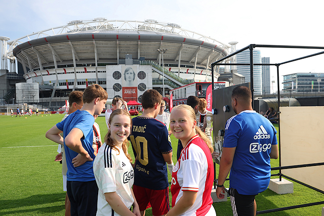 Een fanatieke ballenjongen of -meid laat zich toch niet tegenhouden door tropische temperaturen? Oh nee, zeker niet! Ruim honderd leden van Ajax Jonge Schare leefden zich zondag uit op het trainingsveld naast de Johan Cruijff Arena. Door mee te doen aan verschillende spellen maakten zij kans op een prijs die er niet om liegt!