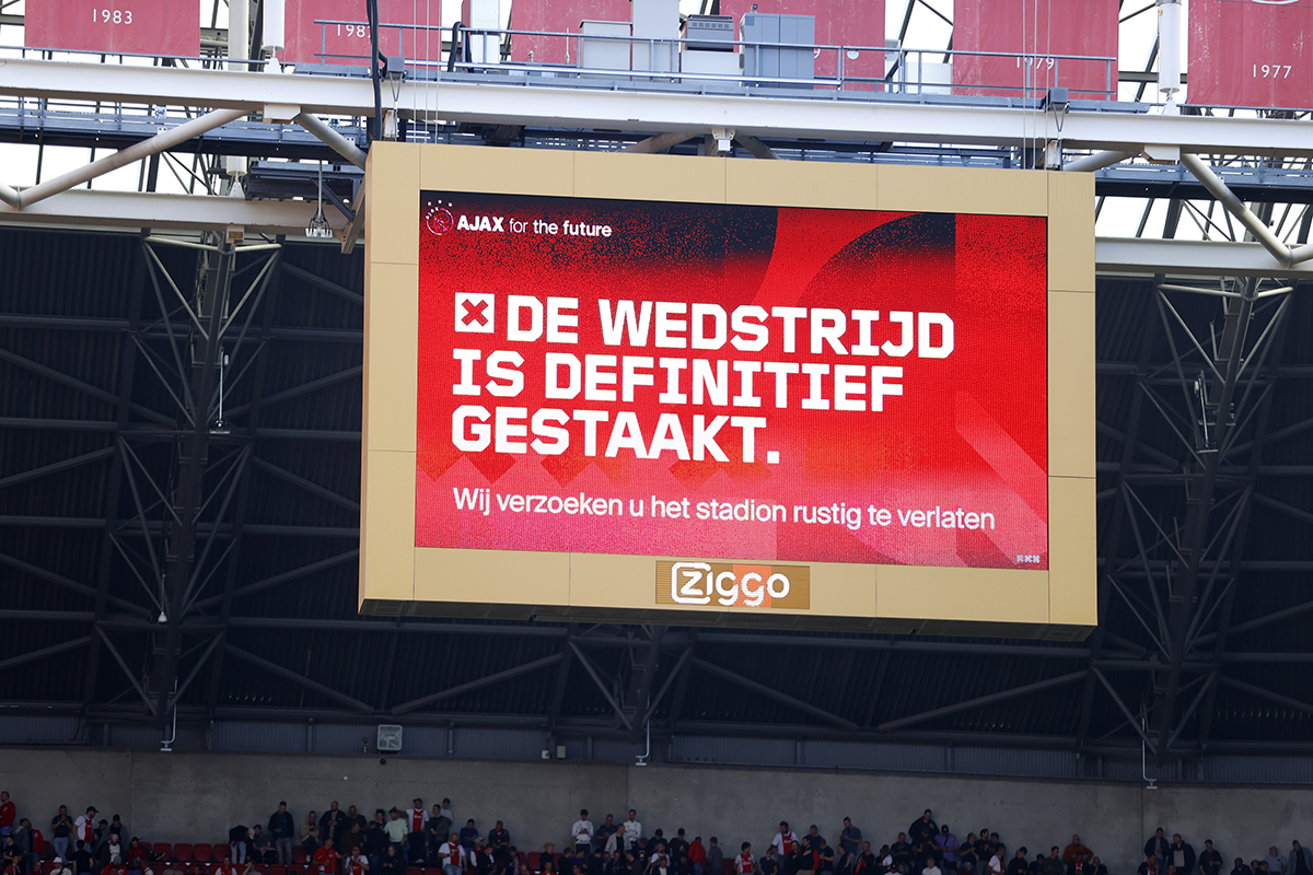 De 196ste editie van de klassieker is zondag definitief gestaakt. Tot tweemaal toe werden er vanaf Zuid fakkels op het veld gegooid. Dat betekende einde wedstrijd. Het stond op dat moment al 0-3.