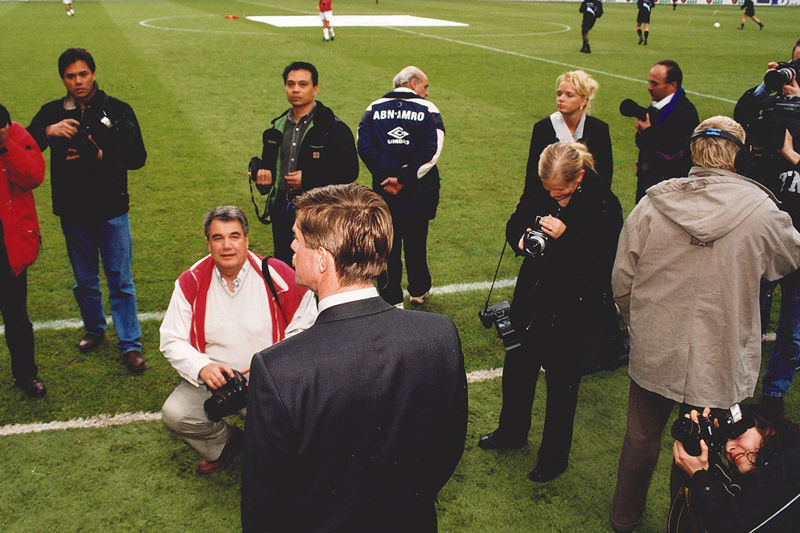 De directeur opleidingen heeft volgens de beleidsmakers van de club genoeg eredivisie-ervaring om Ajax 1 de laatste negen wedstrijden van het seizoen 1999/2000 te coachen, zo is het idee. Seizoenkaarthouders geloven niet zo in het schokeffect, dus in een matig gevulde Amsterdam Arena begint de man uit Terborg aan z’n klus. Dat het nieuws is, kun je zien aan de oploop rond de dug-out. Hét moment voor fotograaf Ron Richel om af te drukken.