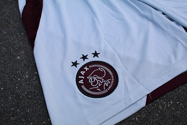 Dan is het interessant in te zoomen op de details. De Adidasstrepen zijn afwisselend rood, zwart, rood gekleurd. Volgens de club is dit een verwijzing naar de vlag van Amsterdam. We dachten in de grijze patronen – die over een groot deel van het shirt zichtbaar zijn – ook de drie andreaskruizen waar te nemen. Gezien het feit dat er een vierde kruis onderop het shirt begint, gaat die theorie echter niet op.