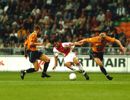 Jeetje, rode kousen… Het gele uittenue van Ajax in seizoen 2000/2001 lijkt volgens scheidsrechter Ruud Bossen teveel op dat van NAC. De Bredase club speelt met witte kousen, dus moet er water bij de wijn. Op rode kousenvoeten dollen Ikedia en Wamberto er op de vleugels flink op los. De NAC-defensie wordt er tureluurs van. Hét moment voor fotograaf Ron Richel om af te drukken.