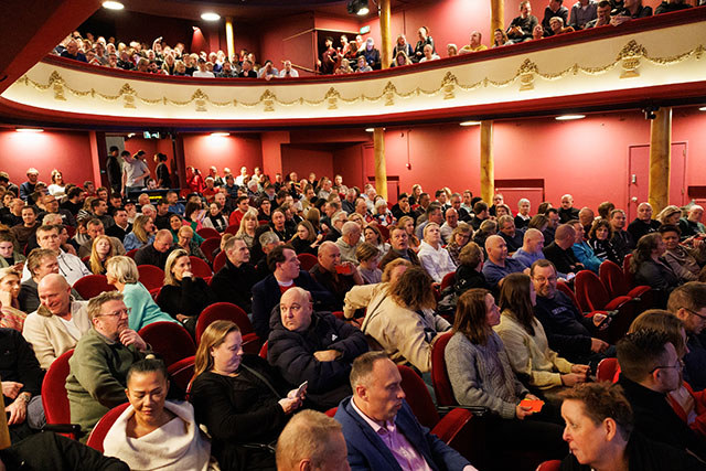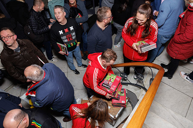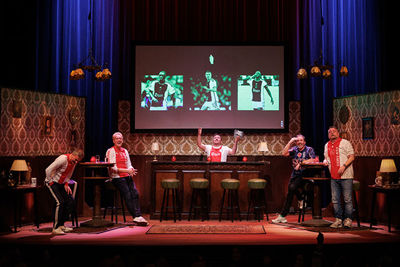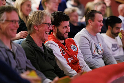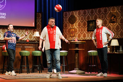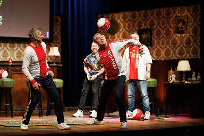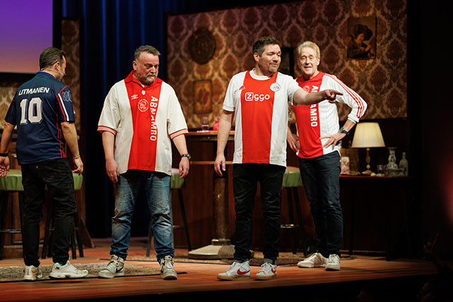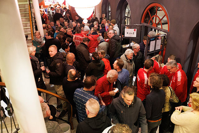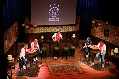 Dan weet je dat je kunt rekenen op spontane grappen en kwieke reacties. De uitverkochte zaal – gevuld met zo’n vierhonderd leden van Supportersvereniging Ajax – werd volop bij het spel betrokken. Sterker nog, met rode en gele kaarten konden zij beide teams van advies voorzien. Natuurlijk was er na afloop ruimte om te proosten op het nieuwe jaar, waarbij we met z’n allen hopen op betere Ajaxtijden.