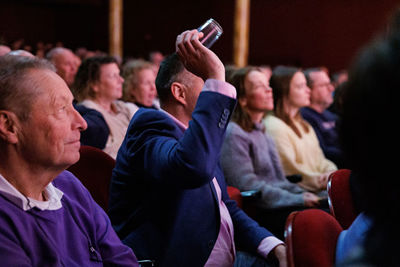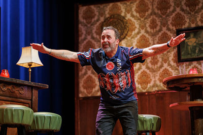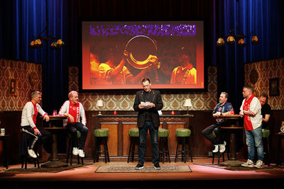 Humor en zelfspot zijn de beste remedie tegen chagrijn. Zo dachten ook de cabaretiers op het podium erover. Onder de bezielende leiding van Klaas van der Eerden namen twee teams het tegen elkaar op in een enerverende quiz over het afgelopen voetbaljaar. Peter Heerschop en Viggo Waas stonden tegenover Horace Cohen en Arie Koomen.