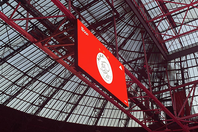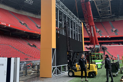 In de eerste weken van 2024 waren ze er in de Johan Cruijff Arena maar druk mee. De oude schermen met de oranje omlijstingen werden ontmanteld. Ze waren aan vervanging toe. Er kwamen fonkelnieuwe LED-schermen voor in de plaats. Allebei een stuk groter. De brede rand is weg. De installaties bestaan nu echt volledig uit schermen.