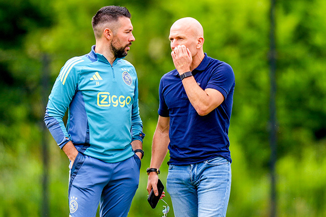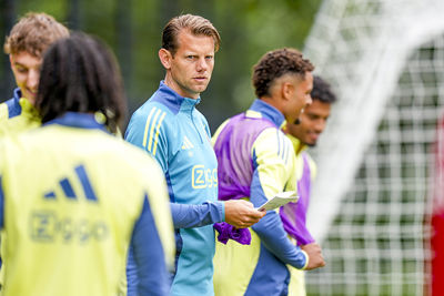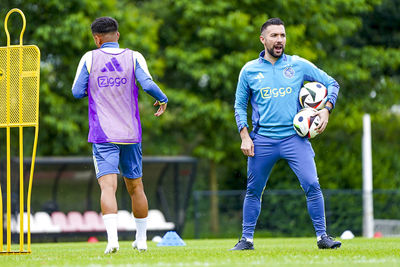 Op het trainingscomplex van Ajax vindt een grote verbouwing plaats, dus de Ajacieden trainen aan de andere kant van de asfaltweg die De Toekomst in tweeën splitst. Op het trainingsveld zien we veel nieuwe gezichten in de staf.