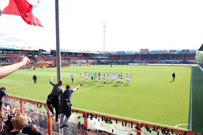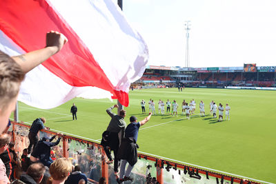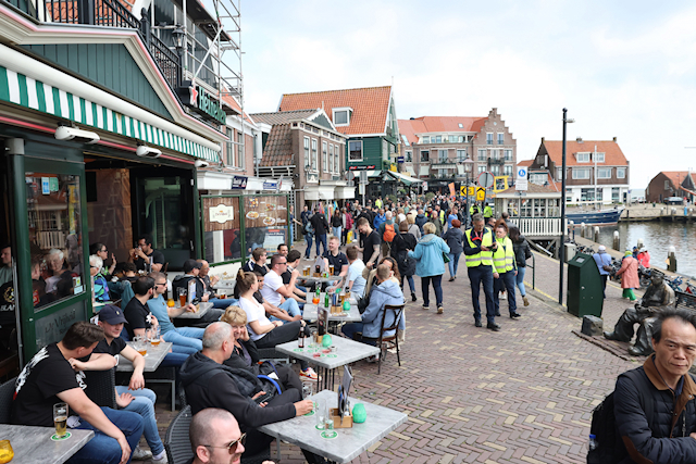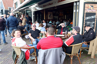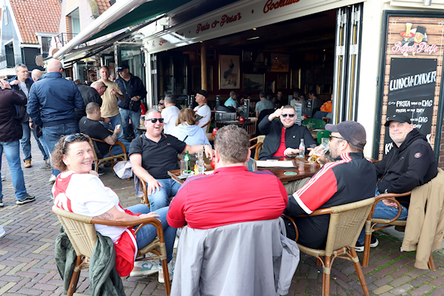 De wedstrijd in Volendam is er altijd eentje om naar uit te kijken. Een potje dicht bij Amsterdam, waar we nog op eigen houtje naartoe mogen reizen. De terrassen op De Dijk zaten dan ook ramvol Ajacieden. Biertje op tafel, visje erbij en volop gezelligheid. Het stralende lentezonnetje maakte alles nog vrolijker.