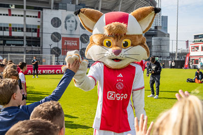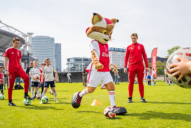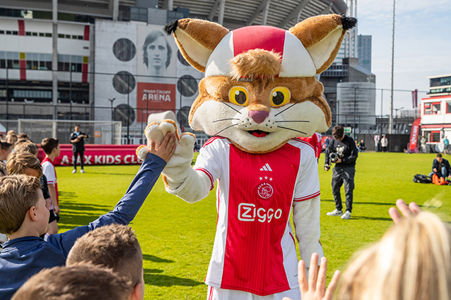 Natuurlijk was Lucky ook van de partij. Onze vrolijke lynx sloot niet alleen aan bij de warming-up, maar trapte ook een balletje mee. Of dat allemaal nog niet genoeg was, kregen de deelnemertjes plotseling bezoek van vier Ajaxspelers.