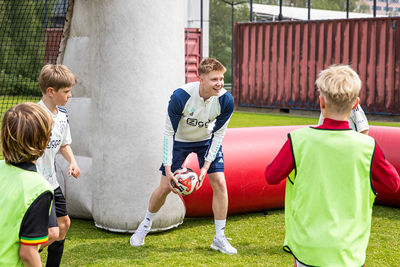 Carlos Forbs, Kristian Hlynsson, Anton Gaaei en Kian Fitz-Jim verrasten de deelnemertjes door lekker mee te voetballen. En wat blijkt? Forbs kan uitstekend keepen! Natuurlijk was er ook tijd voor handtekeningen en selfies.