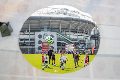Onder een stralend lentezonnetje verzamelden de Ajaciedjes zich op het trainingsveld naast de Johan Cruijff Arena. Dat noemen we een thuiswedstrijd! Onder de rook van ons mooie stadion stonden een heleboel toffe voetbalspelletjes op het programma.
