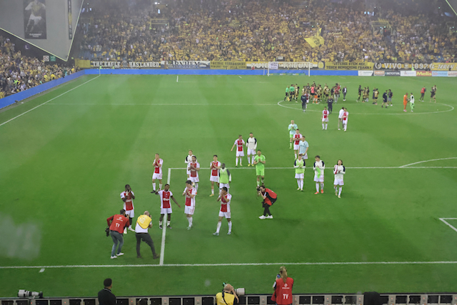 Het dak van Gelredome was dicht, maar moest al snel op een kier om de nodige rookontwikkeling te laten ontsnappen. Ajax 1 in vuur en vlam, zeg maar. Nou ja, bekijk vooral de foto's die De Brouwer maakte. Dan weet je precies hoe het zit.