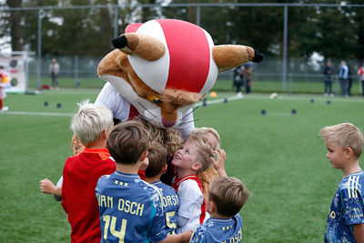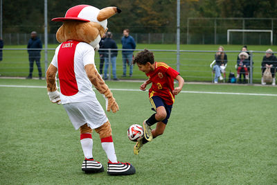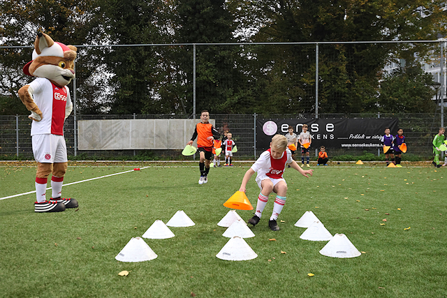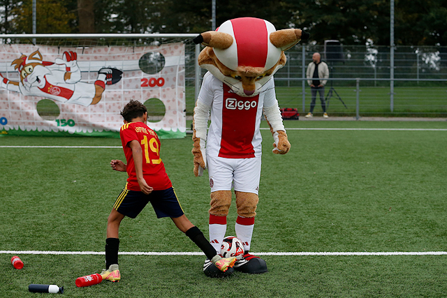 Lekker dribbelen, schieten, hollen en een kijkje nemen in de echte spelersbus van Ajax. Wie wil dat nou niet? Natuurlijk was Lucky ook van de partij. De lynx deelde high-fives en knuffels uit, terwijl er ook een potje werd meegevoetbald.