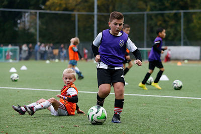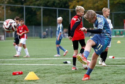 Lekker voetballen met een paar honderd andere Ajaxsupportertjes bij je eigen club. Dat is de Ajax Kids Tour. Ook op bezoek bij HVV Hollandia deden Ajaciedjes onder begeleiding van professionele trainers een heleboel voetbalspelletjes.