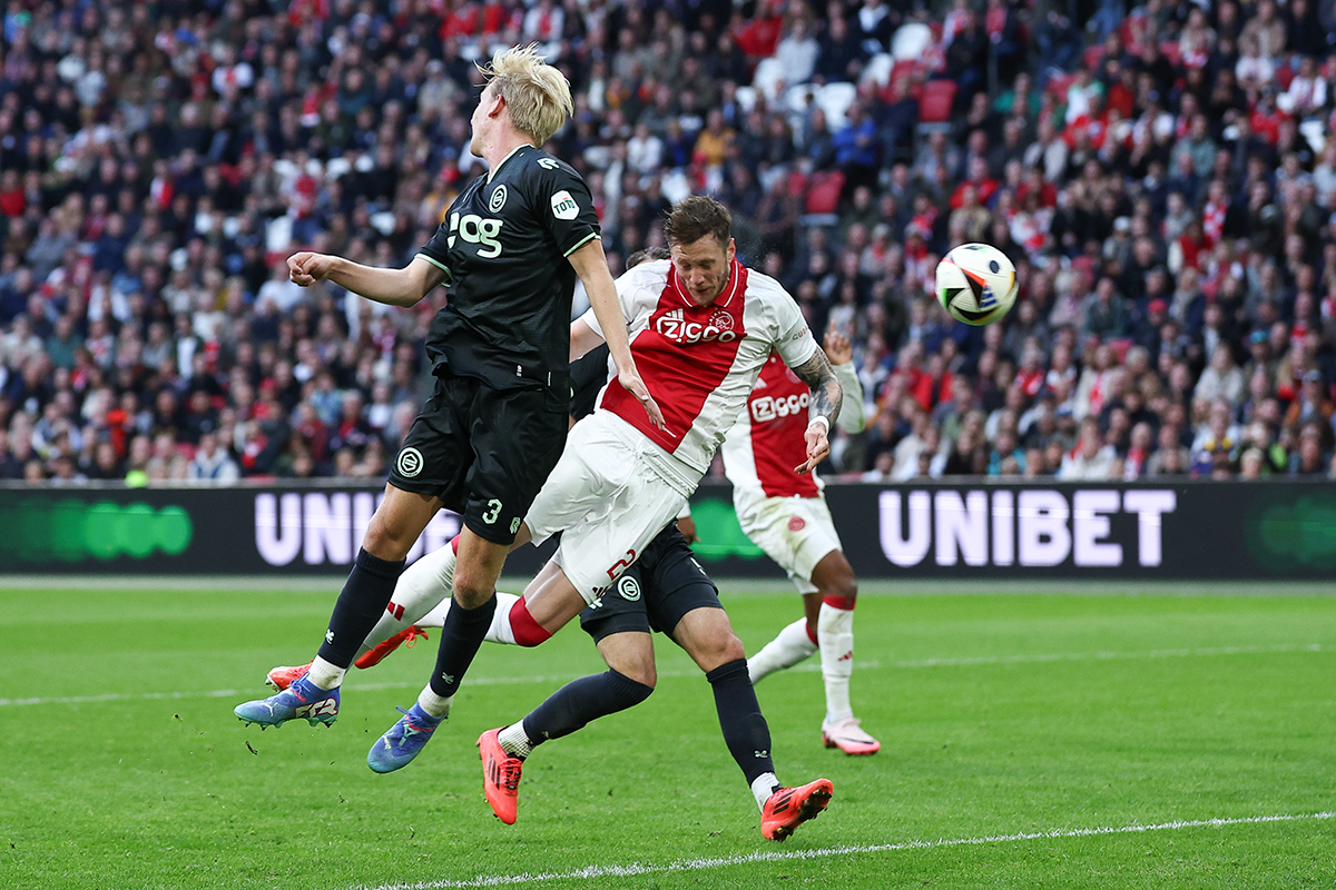 Vlak voordat ze samen binnen de lijnen kwamen, zei Gaaei nog wat tegen Weghorst. “Hij zei: ‘Let op, hè? De eerste bal die ik krijg, slinger ik voor.’ Dat deed hij letterlijk. Ik zag de bal komen en over de eerste man heengaan. De voorzet was zo perfect aangesneden, dat je niet meer moet koppen. Dan gaat-ie misschien zelfs over. Ik liet 'm simpelweg op mijn hoofd vallen,” aldus de matchwinnaar in reactie op een vraag van Ajax Life.