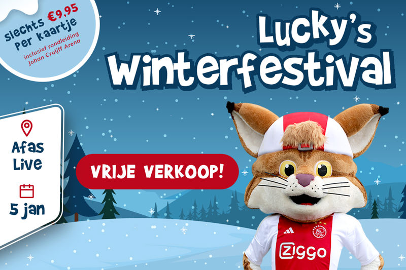 Lucky’s Winterfestival is de ideale afsluiter van de kerstvakantie. Een fijn familie-uitje voor Ajacieden van 5 t/m 12 jaar. Ook voor jongere en oudere supporters is er wat te doen. Zie het als een soort winterwonderland in een Ajaxjasje.