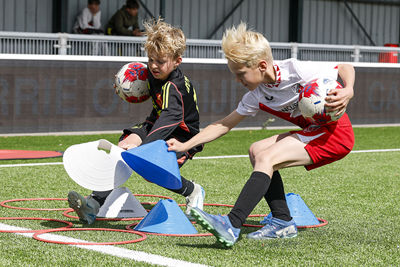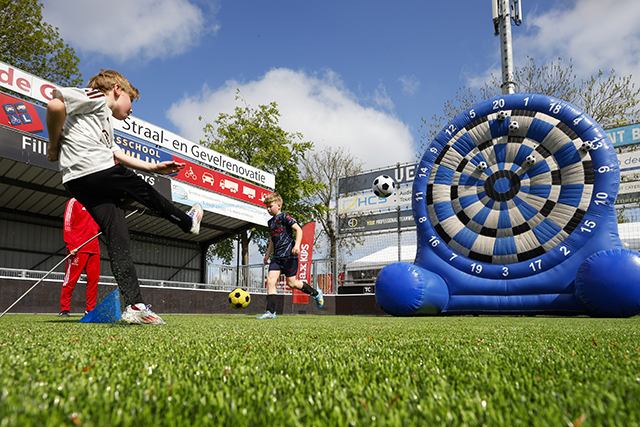 Op het bomvolle complex van IJsselmeervogels werd het sowieso een heerlijke voetbaldag. De zon scheen volop. Natuurlijk was mascotte Lucky ook van de partij om een balletje mee te trappen en high-fives uit te delen.