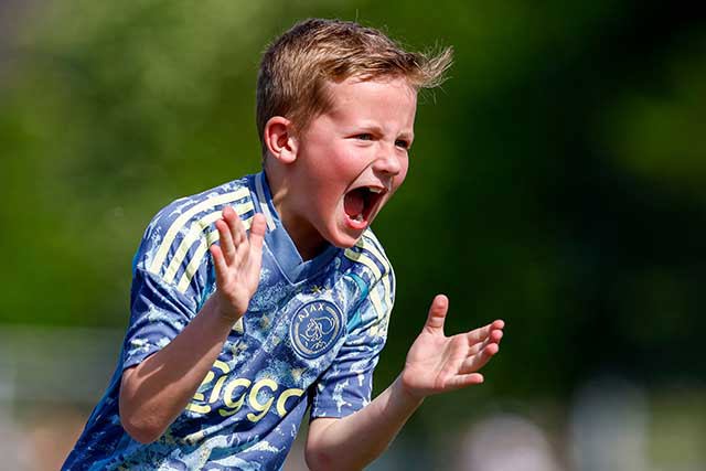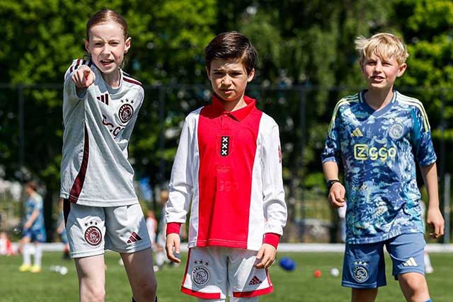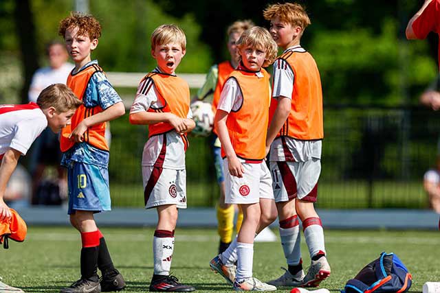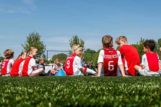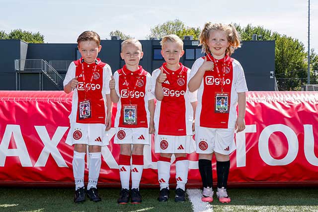 De vele papa’s en mama’s langs de kant genoten van een wit-rood-witte kinderzee. Wat een pret! Lekker voetballen op het gras waar normaal gesproken de spelers van Ajax trainen. Gaaf!