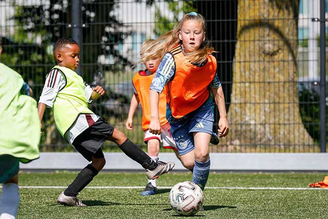 Op het trainingscomplex van Ajax werd het een heerlijke voetbaldag vol leuke spelletjes. De zon scheen volop. Natuurlijk was mascotte Lucky van de partij om een balletje mee te trappen en high-fives uit te delen. Tijdens de ochtendsessie kwamen een aantal spelers van Ajax Vrouwen gedag zeggen, waaronder Lily Yohannes en Tiny Hoekstra.
