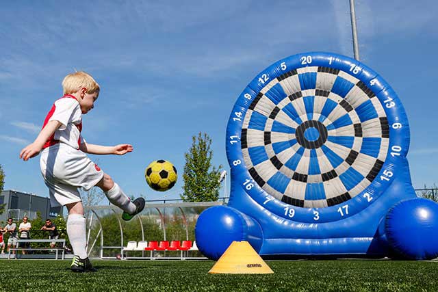 Toch werd natuurlijk vooral plezier gemaakt met de bal. Denk aan schieten op een onwijs groot dartbord of aan grappige dribbeloefeningen waarbij je ineens achteruit moet lopen. Of er ook tijd was voor gewoon een lekker partijtje? Oh, jazeker!