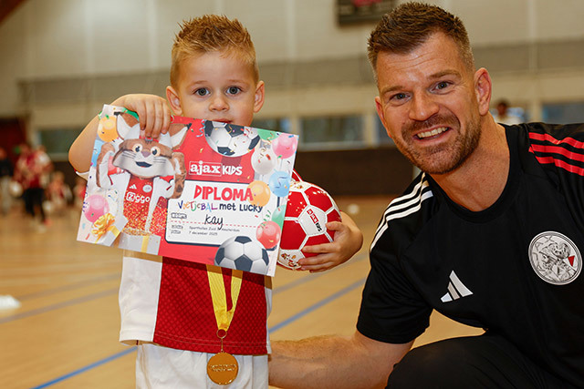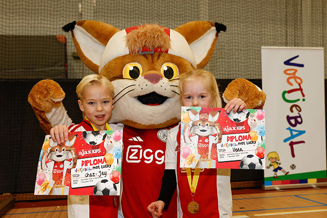 Of dat een beetje leuk was? We denken dat dit fotoverslag genoeg zegt! Lucky deelde niet alleen handtekeningen en high-fives uit, maar deed ook mee. De deelnemertjes gingen naar huis met een toffe Ajaxbal, een mooi diploma en een gave medaille.