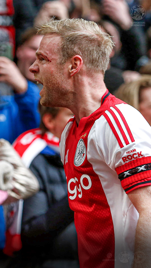 Als Davy Klaassen scoort, weet je dat er mooie juichfoto's volgen. Dat was na zijn rake poeier tegen Feyenoord (2-0) niet anders. Nu zelfs met een bebloede kop. Het staat Klaassen uitstekend!