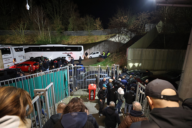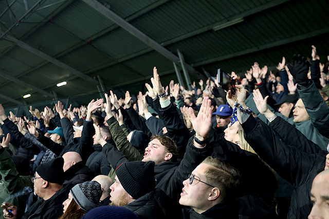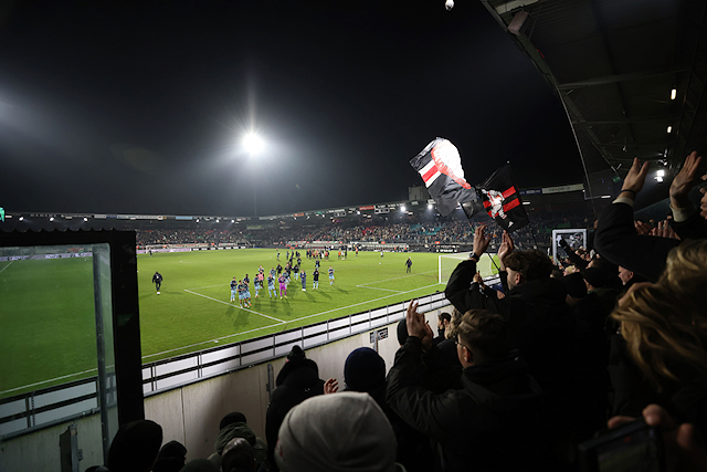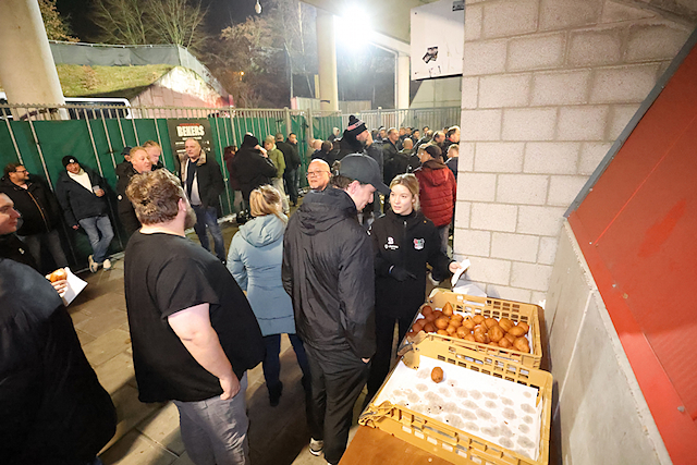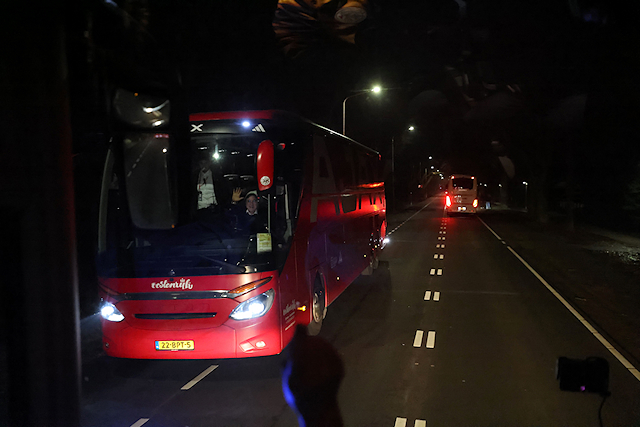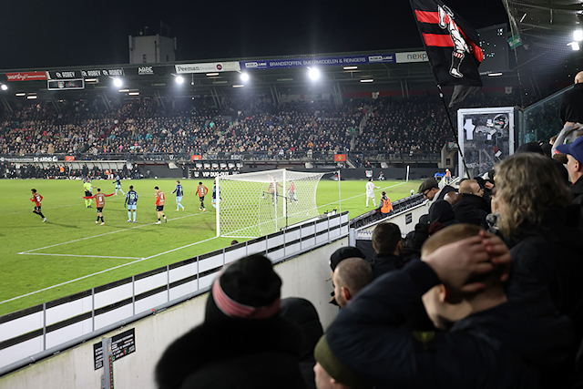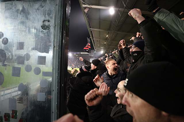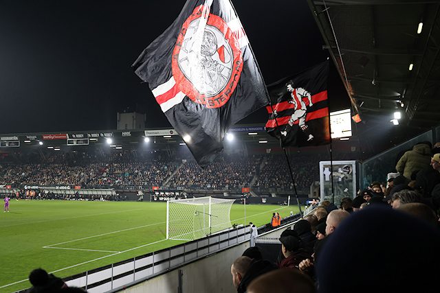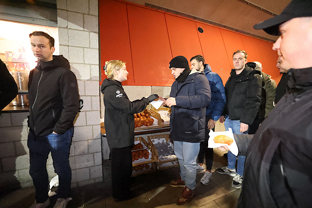 Het was goed fris in Nijmegen, maar de Ajacieden in het uitvak werden door gastheer NEC getrakteerd op oliebollen. Dat vonden we een uitermate smakelijke en mooie geste.